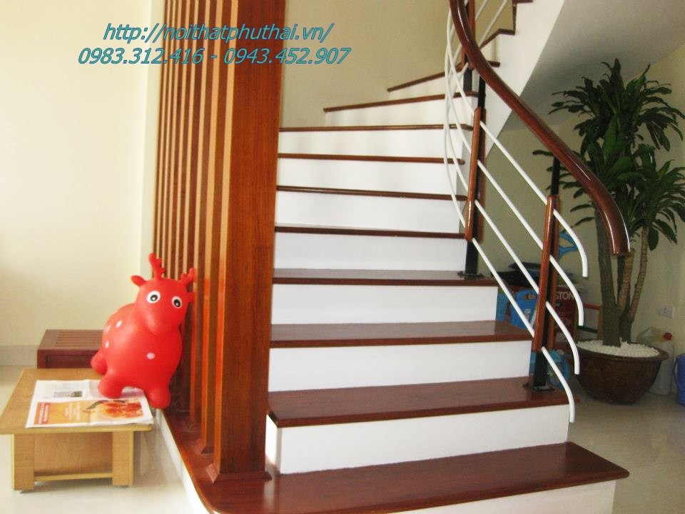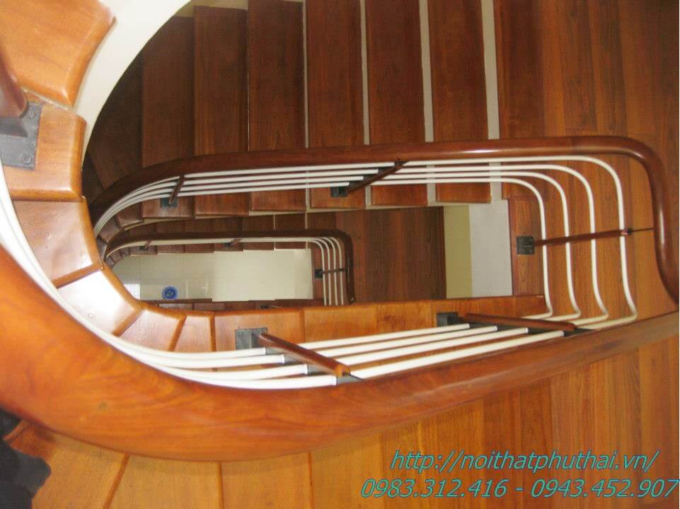 * Tay vịn gỗ chò chỉ hoặc gỗ nghiến D60, D65, hoặc Elip (Sơn PU hoàn thiện màu cánh dán đậm nhạt theo yêu cầu của khách hàng)